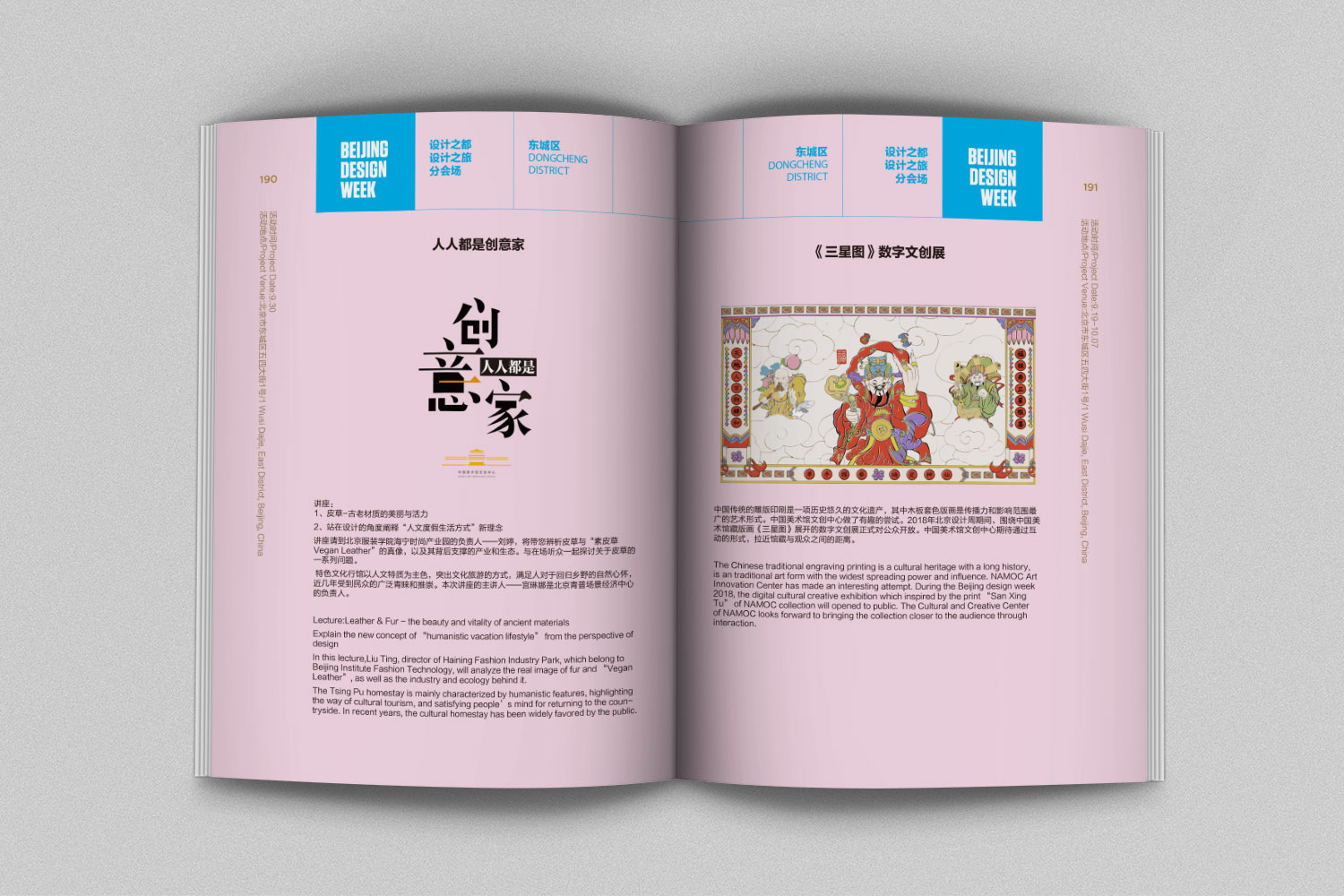 自2009年首届创办起,北京国际设计周已成功举办了七届,每年吸引参会设计师、机构代表、学术专家超过2000人,注册媒体百余家,观众超过 500万人次,已步入国际A类设计活动行列,成为亚洲规模最大的设计周和首都具有国际影响力、可持续发展的创意设计公共服务平台。 本人受邀为设计周设计活动导览手册及开幕式相关物料,手册规模在600p左右,涵盖了活动期间北京各分会场的全部活动介绍,通过设计色彩索引以方便受众快速查找到信息。