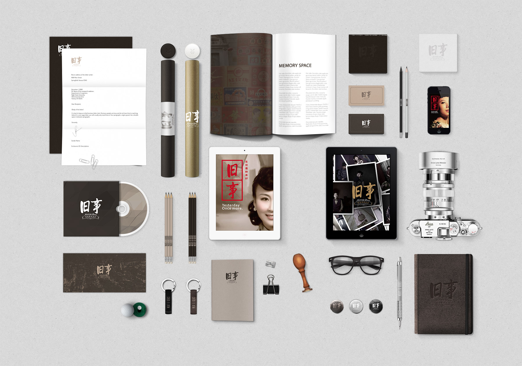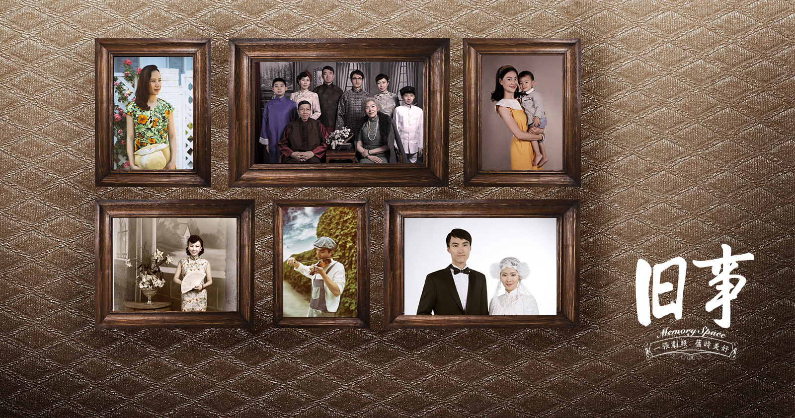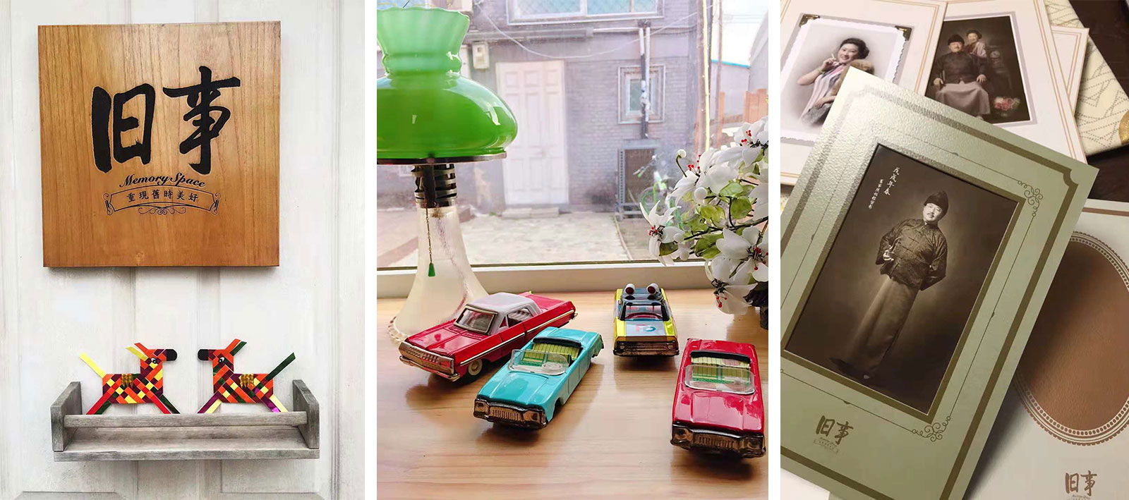 复古主题照相馆。除了民国风、老上海婚纱、vintage复古骑行、重返7080、芳华……还可以根据客人需求进行私人订制,参照传统胶片手工上色技法,进行分层着色,真实再现年代感。本人受邀完成品牌vi设计及相关延展的物料设计。