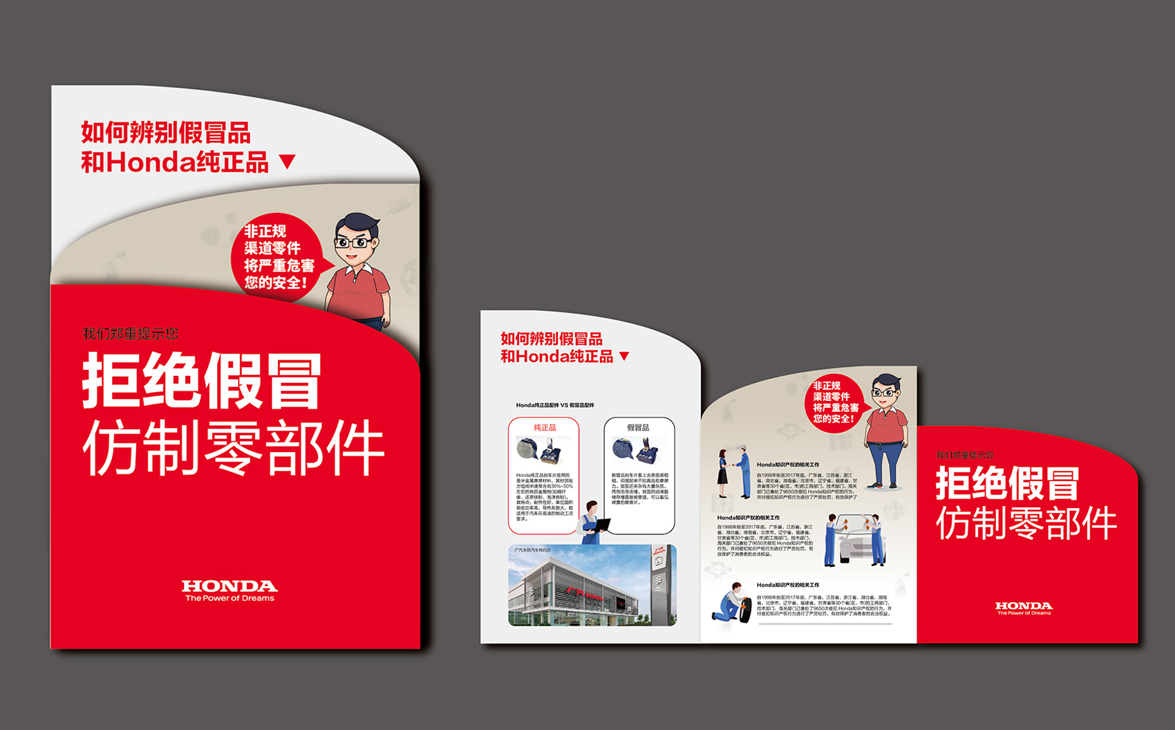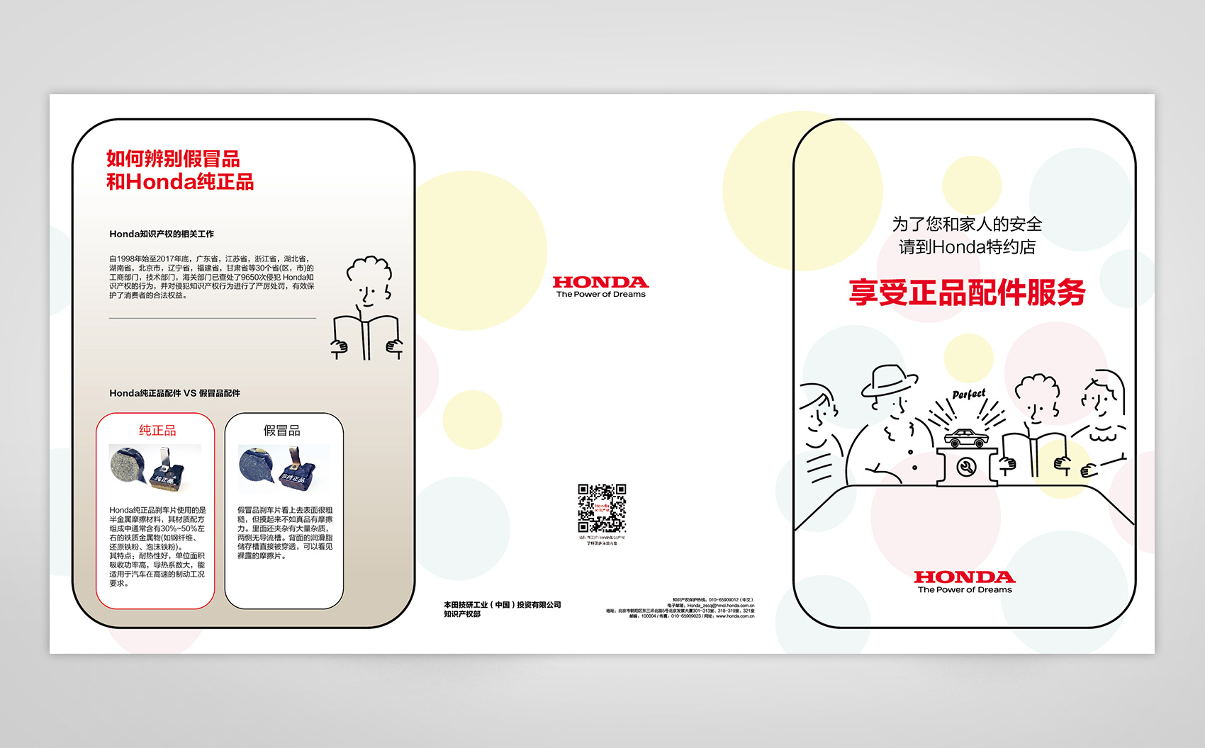 为普及本田产品的正品鉴别知识及知识产权相关宣传,本人受委托围绕品牌、产品安全、鉴别方法和知识产权延展设计了一整套包括店内海报,折页,专利手册等物料 / 由本田和宋庆龄基金会共同发起的“第5届本田梦想基金”活动页面设计
